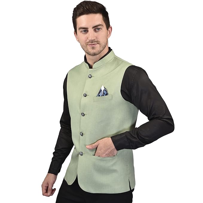 - Style : Modi Jacket / Nehru Jacket – Front Closure Buttons , 2 Front Pocket , 1 Chest Pocket , Double Vented Back for Comfort on the Waist